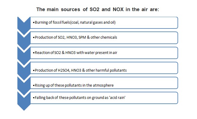 Acid rain results when already present sulfur dioxide (SO2) and nitrogen oxides (NOX) react with water, oxygen, and other chemicals to make sulphuric and nitric acids.