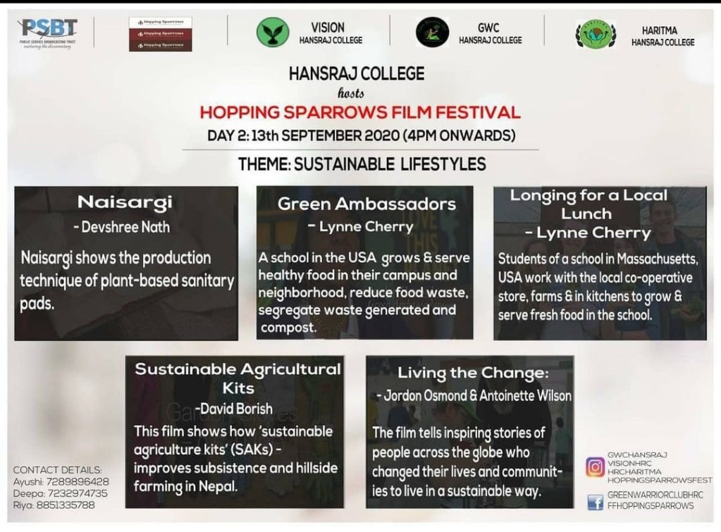Haritima and other renowned societies of Hansraj in collaboration with Hopping sparrows Film Festival and TERRAorganized a 2 day Film Festival.
