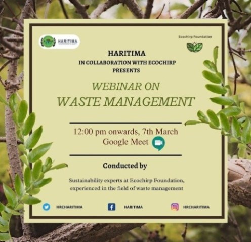 Webinar was organized in collaboration with EcochirpFoundation on “Waste Management” which was addressed by Harshad Gupta, Sustainability Expert at Ecochirp, experienced in the field of waste management.