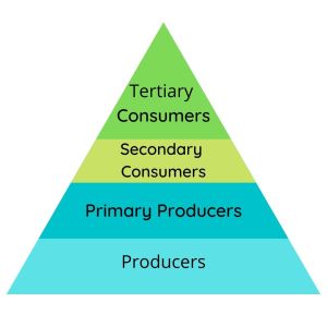 The base, occupied by the producers is the broadest followed by consumers on the top.
