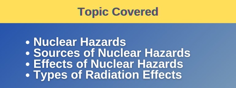 Nuclear hazards are the hazards caused by the release of radioactive nuclides in the environment either by natural sources or man-made sources.